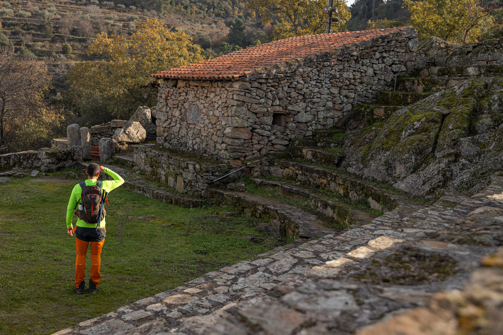 Na een transfer naar Picote start je de wandeling bij de dorpskiosk, een belangrijk ontmoetingspunt. Je verkent de kerk, landbouwterrassen en het traditionele dorpsleven voordat je richting het beroemde Fraga do Puio-uitkijkpunt loopt: een moderne, zwevende structuur met een ongelooflijk panorama over de Douro-kloof. Daarna daal je af door stille natuur naar het Eremitério Os Santos, een unieke granieten kluis uit de 16e eeuw met historische fresco’s. De route vormt een lus terug naar het dorp, waarna je naar je volgende verblijf in Bragança wordt gebracht.